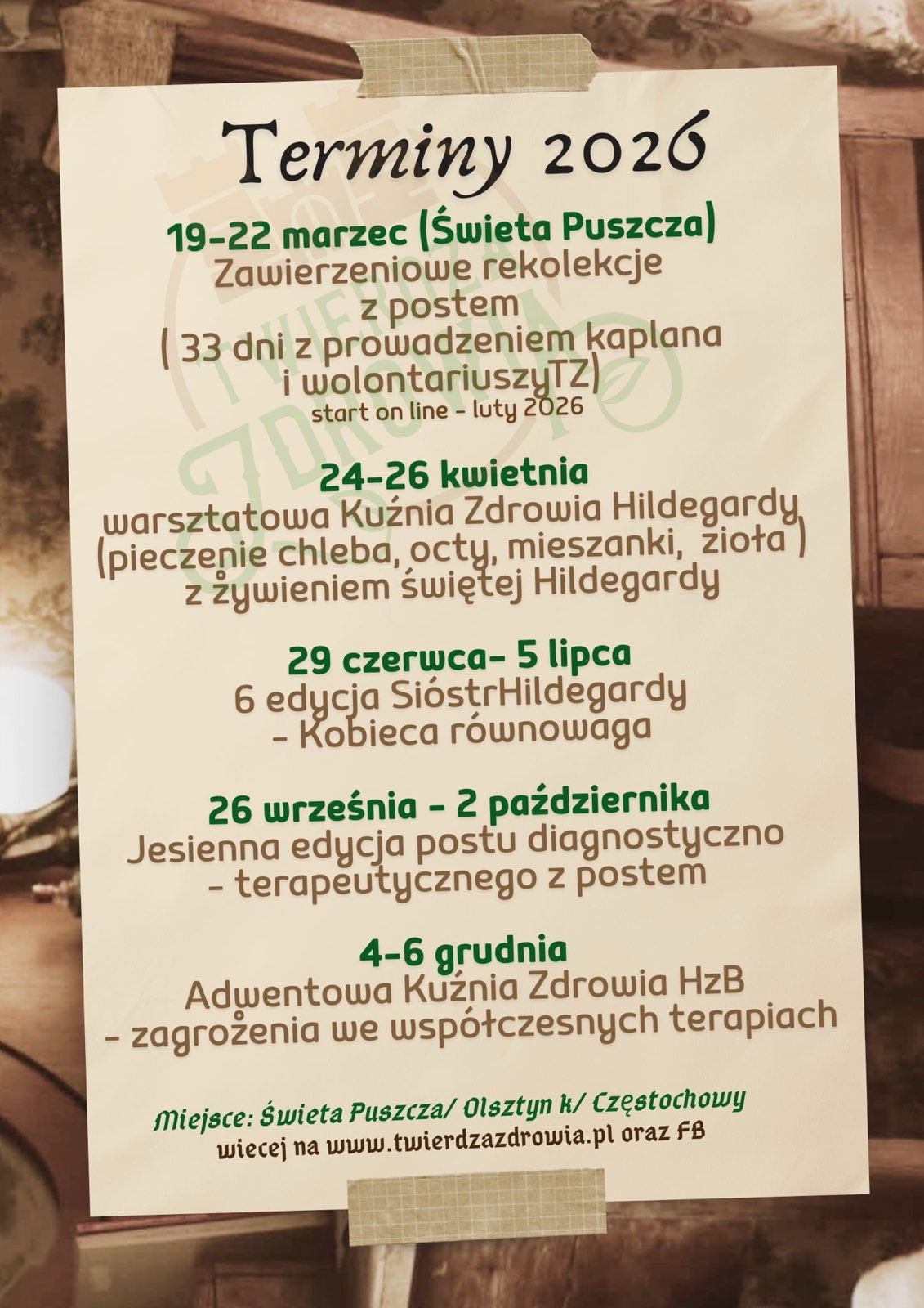 Zapraszamy na Adwentową Kuźnię Zdrowia Św. Hildegardy, 4-7 Grudnia, Święta Puszcza k. Częstochowy! Odrzuć
